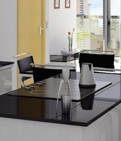 Ở đây mẫu đá được giới thiệu là dòng solid đen trơn, một màu vô cùng ấn tượng cho những không gian nội thất có tông màu trắng, đơn giản mà đẹp mắt, nổi bật mà không gây phản cảm. Song yếu điểm lớn nhất của dòng solid trơn này là hơi dễ bị trầy nếu có va chạm mạnh, tuy nhiên việc làm mới lại mặt đá rất đơn giản, chỉ cần đánh bóng lại là đẹp như lúc ban đầu.